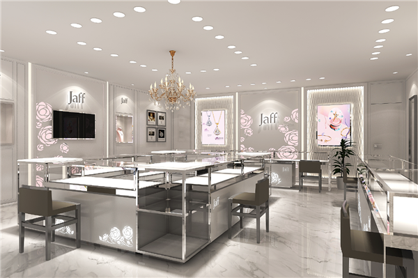 jaff捷夫珠寶是獨具設(shè)計風(fēng)格的知名珠寶品牌,主營鉆石定制類珠寶產(chǎn)品,此次與品誠展示合作的是其位于哈爾濱阿城區(qū)的加盟店,店鋪設(shè)計方案為客戶方提供,我司負責(zé)其店內(nèi)墻面背墻及珠寶展示柜的制作和現(xiàn)場安裝,制作工期20天,完工時間2019年12月22日。
